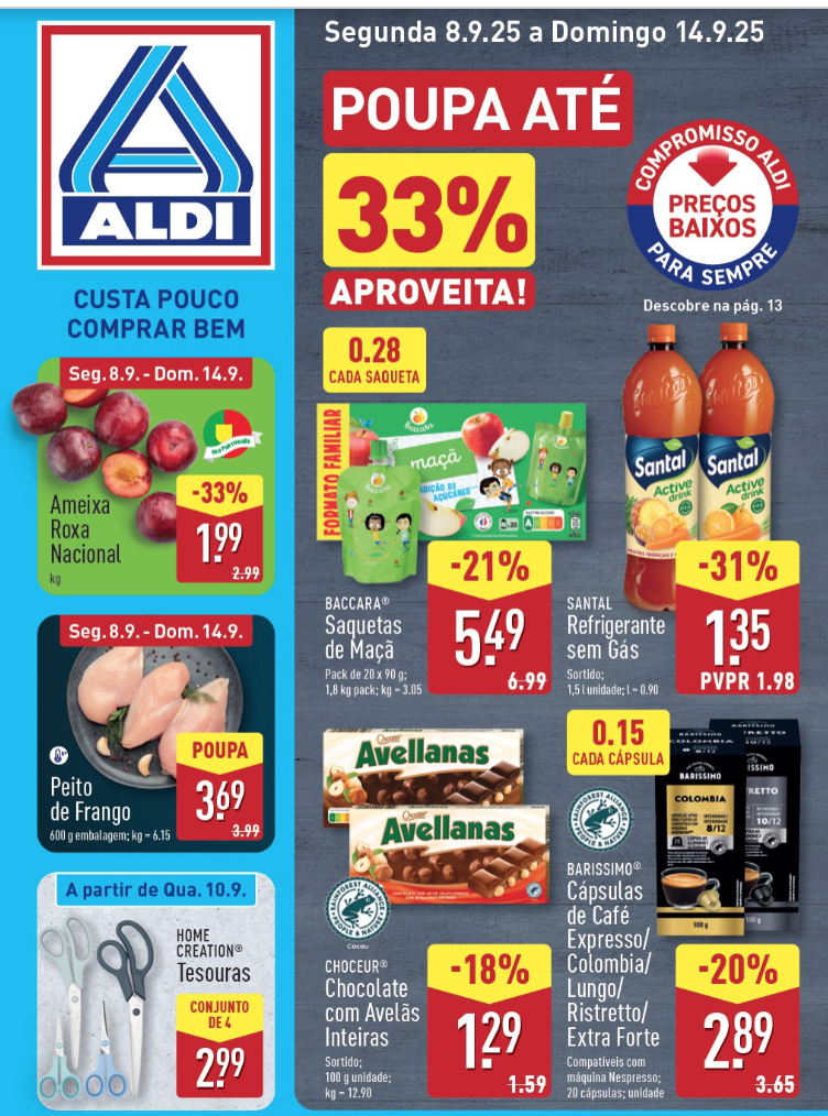 Novo folheto de promoções das lojas Aldi – De De 8 a 14 Setembro.