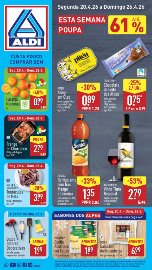 Novo folheto de promoções das lojas Aldi. Esta semana poupanças até 61%.