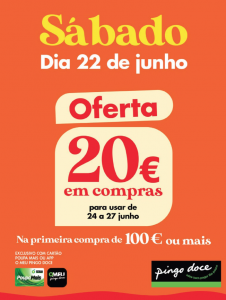 ALERTA – Oferta de 20€ PINGO DOCE Promoções Fim de Semana – Só sábado 22 Junho !