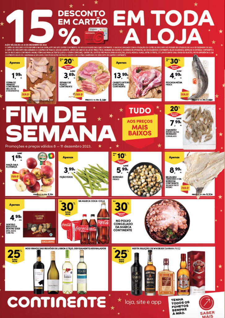 Novo folheto de promoções Continente Fim de Semana – De 8 a 11 Dezembro.