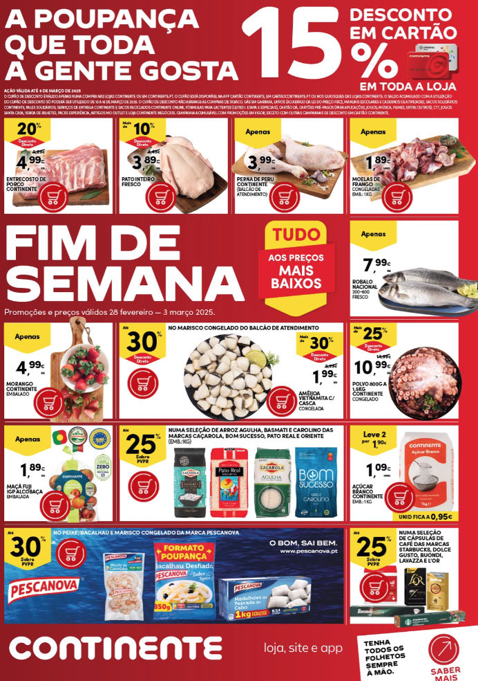 Folheto de Promoções Fim de Semana Continente. Até 2ª Feira.