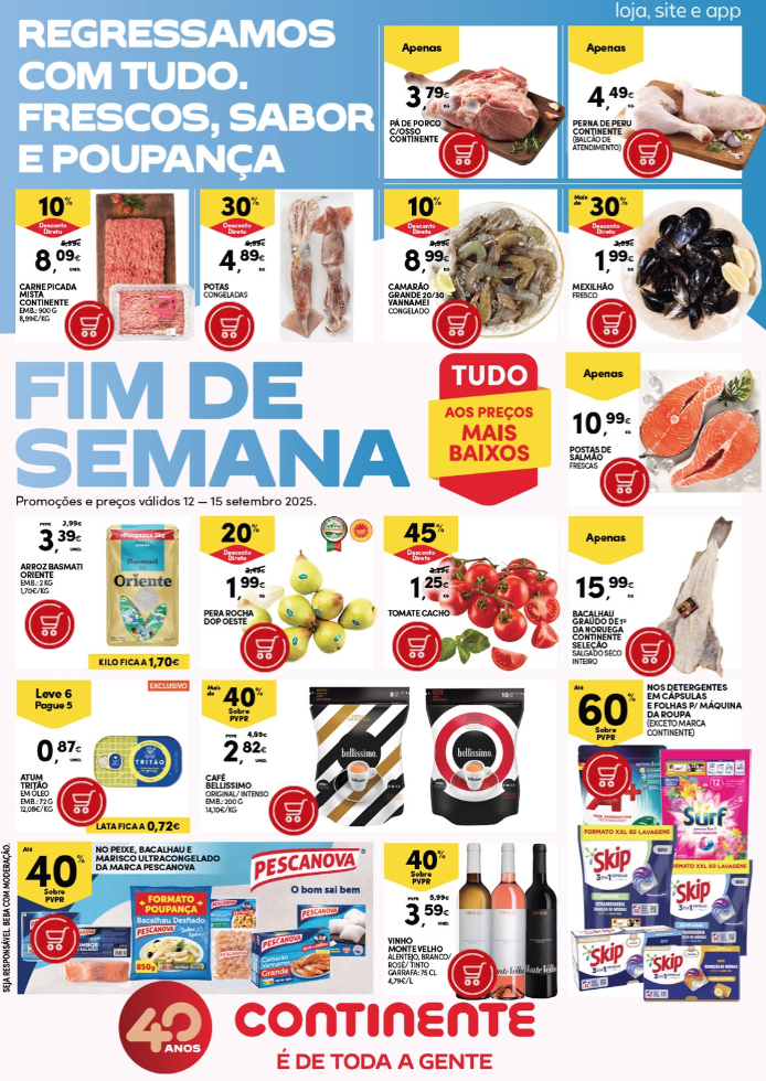 Novo folheto de promoções Continente Fim de Semana – De 12 a 15 Setembro.