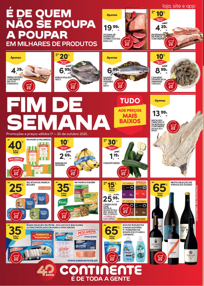 Novo folheto de promoções Continente Fim de Semana – De 17 a 20 Outubro.