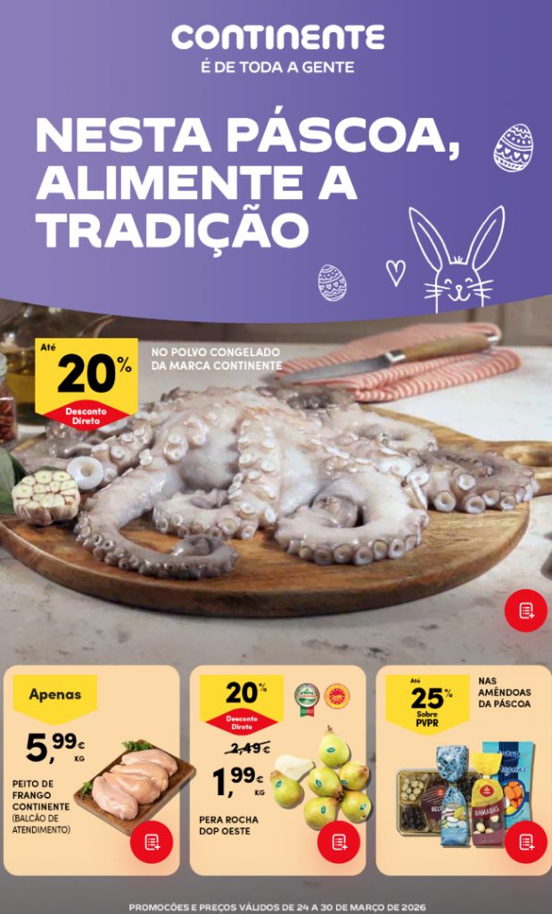 Consulte o novo folheto de promoções Continente – Todos os descontos desta semana. De 24 a 30 Março.