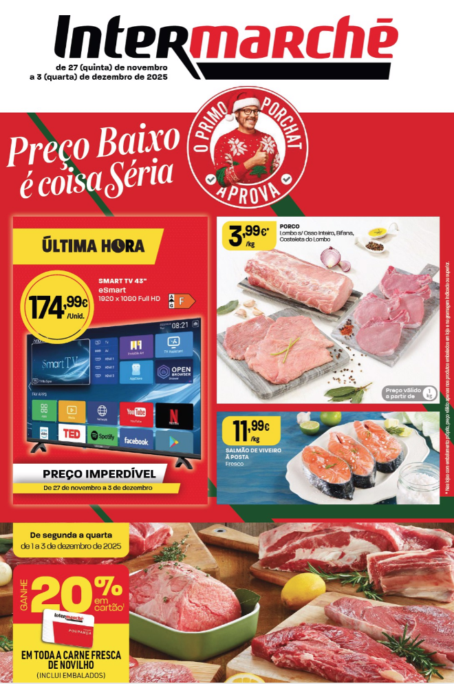 Já disponível o novo folheto de promoções Intermarché – De 27 Novembro a 3 Dezembro.