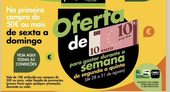 Apenas este Fim de Semana – Não perca a oferta Pingo Doce 10€ de oferta numa primeira compra de valor igual ou superior a 50€.
