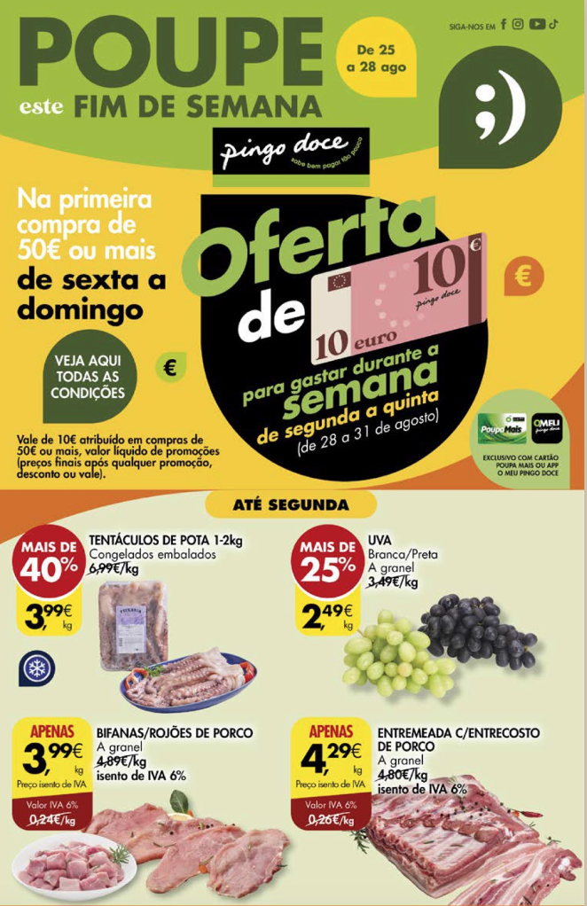 Consulte o novo folheto de promoções PINGO DOCE Fim de Semana – De 25 a 28 Agosto.