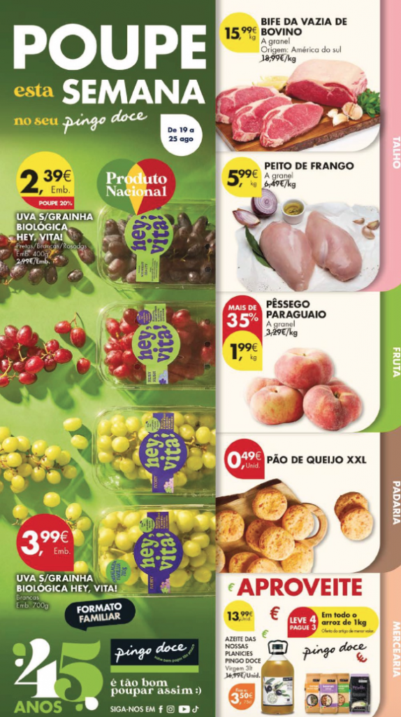 Veja o novo folheto de promoções Pingo Doce -De 19 a 25 de agosto-
