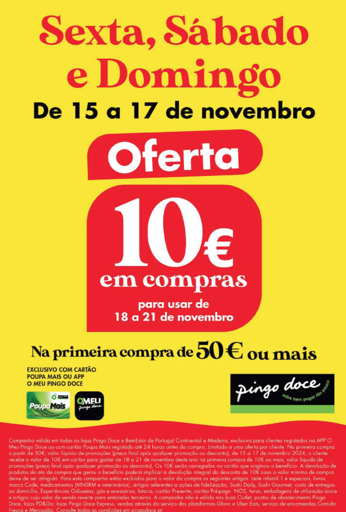 FIM DE SEMANA – Oferta Pingo Doce. Apenas até 17 Novembro.