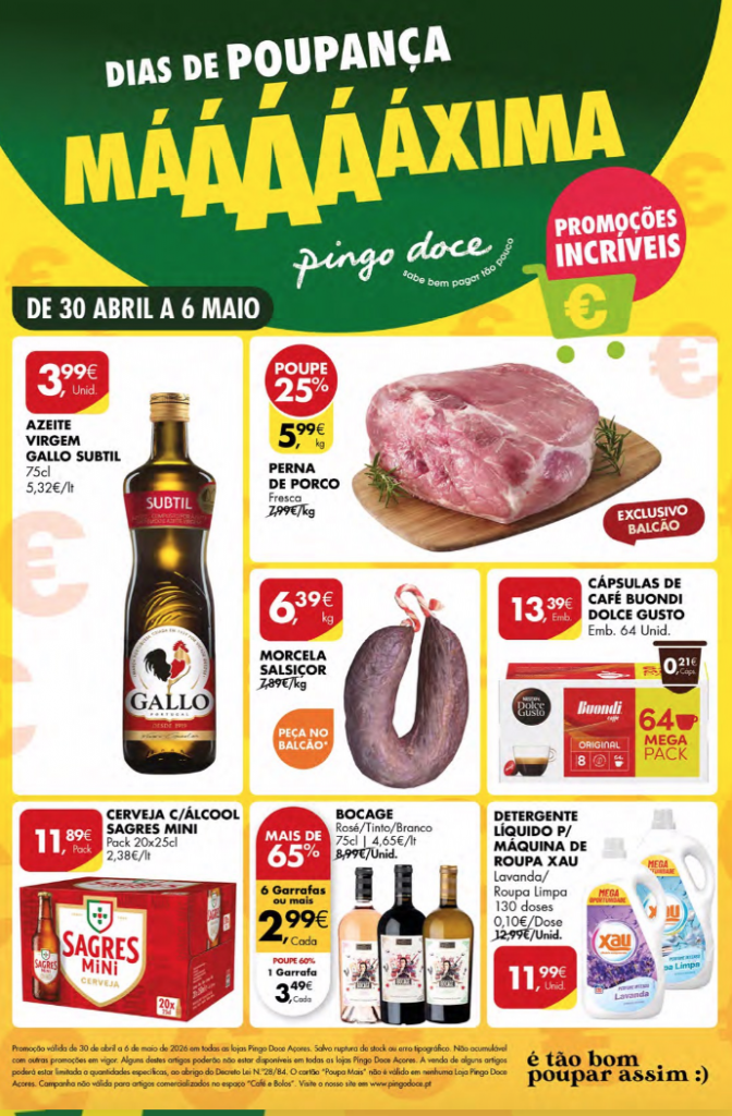 ” Dias de Poupança Máxima ” – Novo folheto de promoções Pingo Doce Açores. De 30 Abril a 6 Maio.