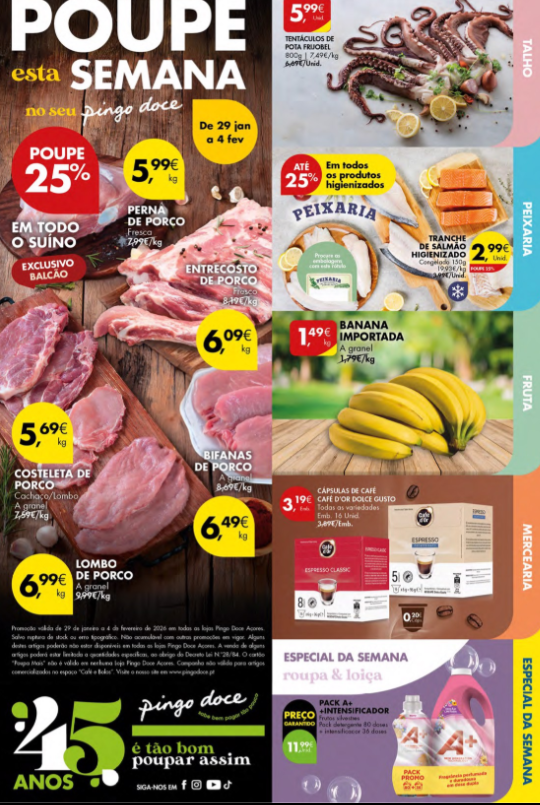 Folheto de Promoções e Descontos Pingo Doce – De 29 Janeiro a 4 Fevereiro.